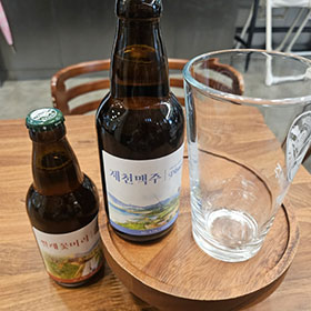 제천 전통시장인 중앙시장 안에 위치한 양조장. 그 양조장에서 직접 만드는 수제 맥주입니다. 독일식 바이젠 스타일 바나나향의 ‘산들바람’, 바닐라빈과 카카오닙스가